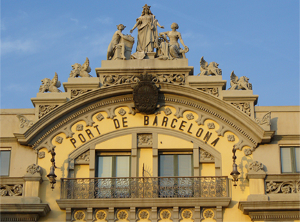 :: Hafengebäude in Barcelona, warme Abendsonne :: hinter dem Hafen entdeckte ich diese Palmen: Sommergefühle erwachen...! ::