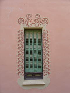 :: Das Schränkchen zu den Polstermöbeln :: Der Hausherr(?!) selbst :: Eines der vielen reichverzierten Fenster am Haus ::