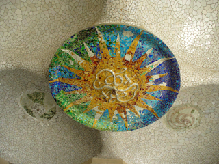 Gaudís feines Mosaik an einer Decke im Park Güel
