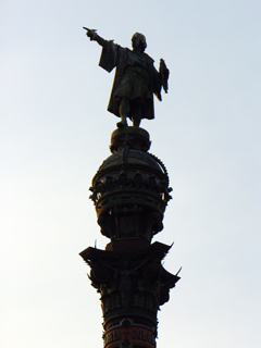 :: unser Blick aus dem Pensionsfenster :: ein Jungbrunnen ;) dahinter das Wachsmuseum :: Columbus hoch oben auf dem Sockel ::