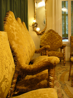 :: Das Schränkchen zu den Polstermöbeln :: Der Hausherr(?!) selbst :: Eines der vielen reichverzierten Fenster am Haus ::
