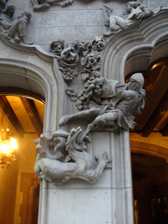 :: Das Haus und sein Nachbar, eine Persönlichkeit :: auch hier gibt es schmucke Lampen :: der Drachenkampf an der Eingangssäule ::